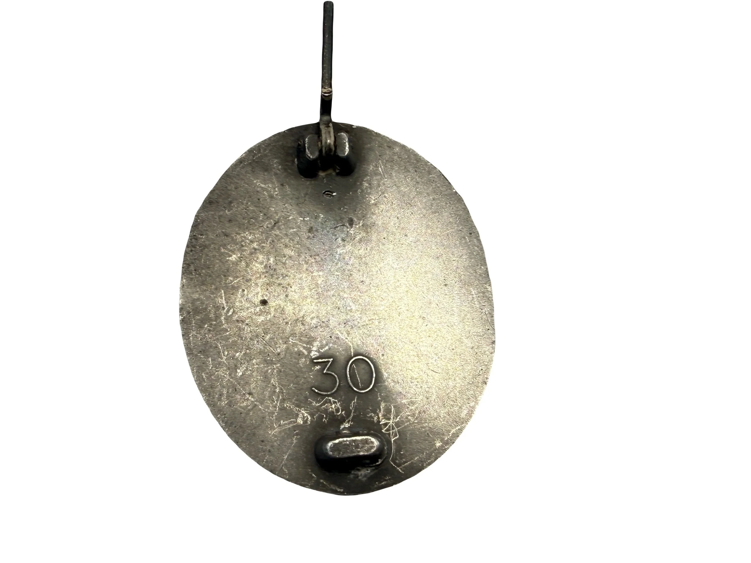 Offered for sale is a lovely example of the WW2 German silver wound badge. These wound badges were awarded to German soldiers who were severely wounded while serving in the military. This badge is in great condition, retaining most of its original finish. It is also nicely stamped on the reverse with the maker code of “30”. These display greatly and are required for any serious collection!