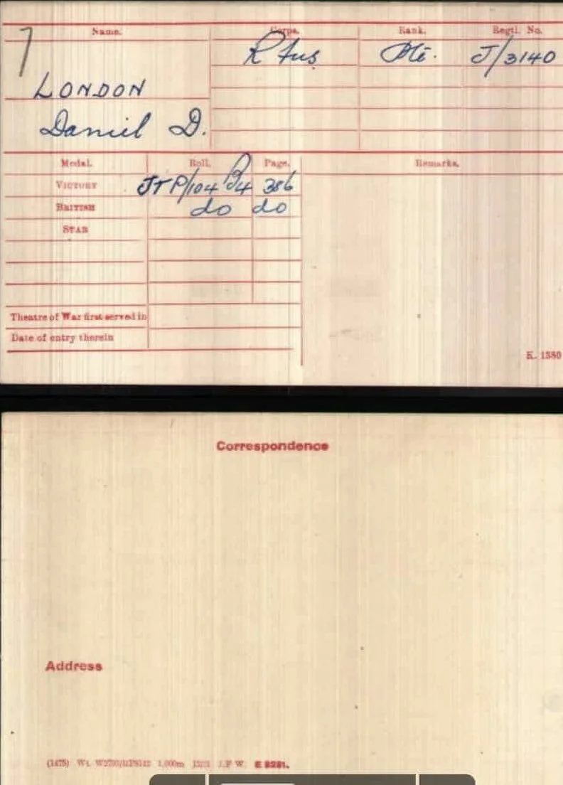 Offered here is a lovely pair of British victory/service medals awarded to a veteran of the First World War. These medals are officially stamped on the rim of each medal with “J-3140 D.D. London R-FUS”. Our research indicates that these medals were awarded to Daniel D. London, who served with the 39th Battalion Royal Fusiliers in 1918. London served in Palestine during the Arabian campaign, and interestingly enlisted from Cincinnati Ohio. The 39th battalion of Royal Fusiliers were known as the “American Battalion” as the British government recruited American Jews to help liberate the holy land from Ottoman Turkish rule. The 39th was apart of what became known as the “Jewish Legion” during the war. London was discharged for sciatica, and eventually died in British Mandate Palestine in 1924. The research attached is only available digitally and the buyer is able to download it to their computer. A very interesting piece of First World War history!