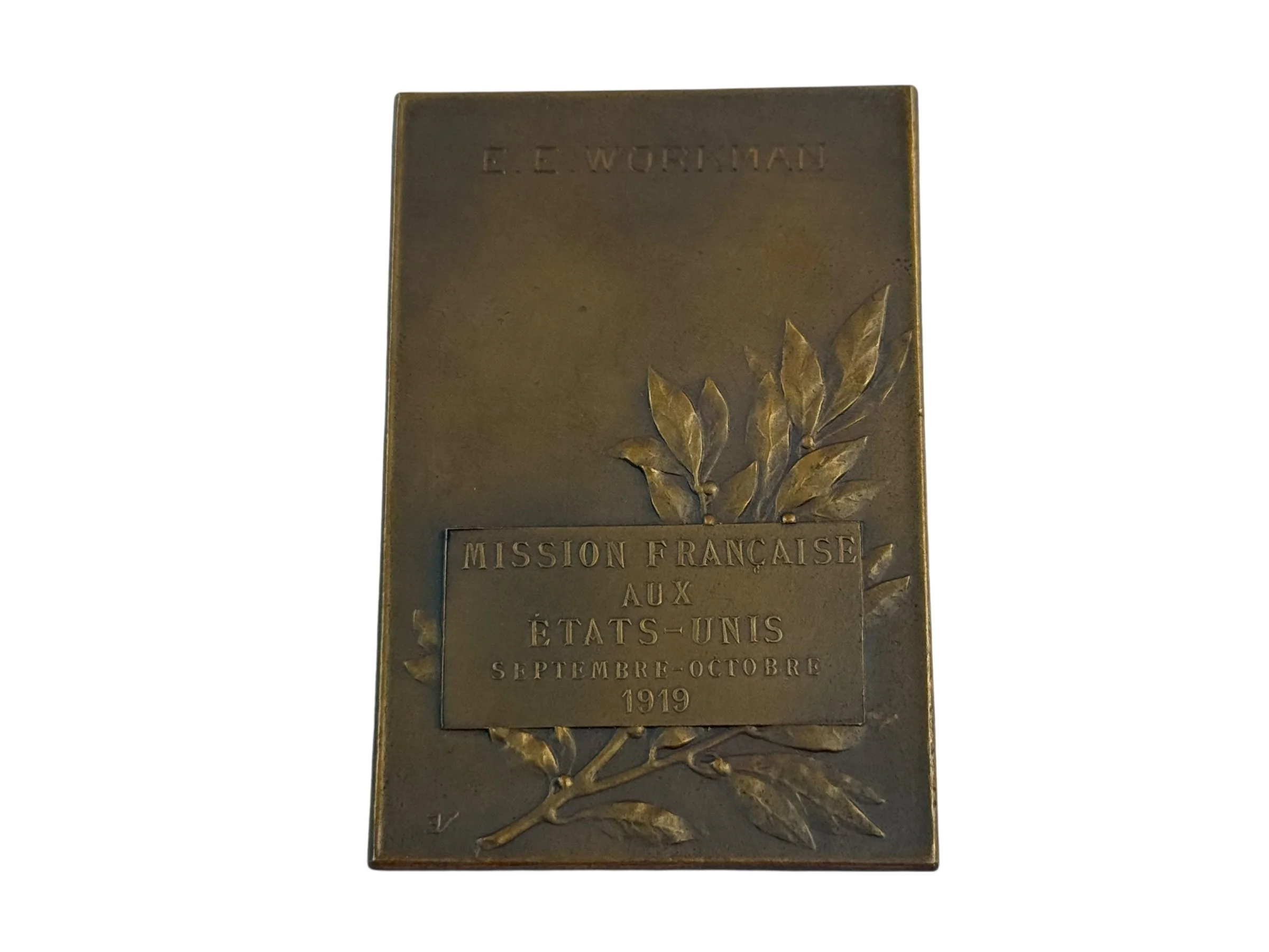 WWI French Diplomatic Mission to DC 1919 Bronze Table Medal Name Engraved