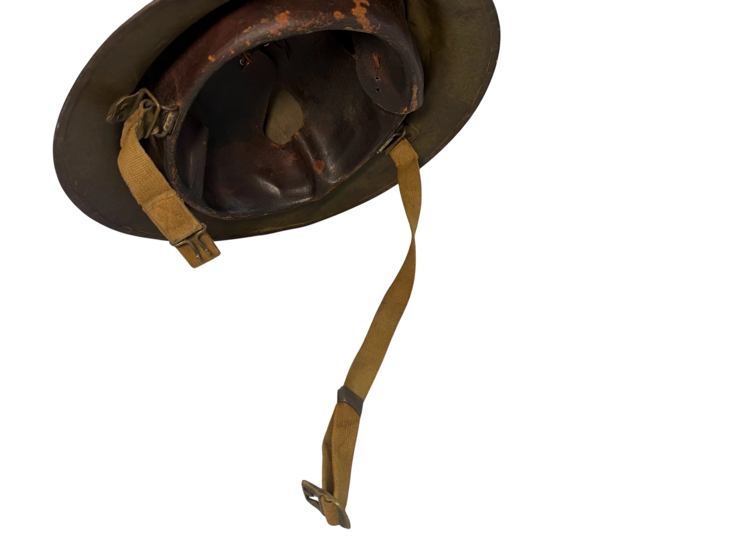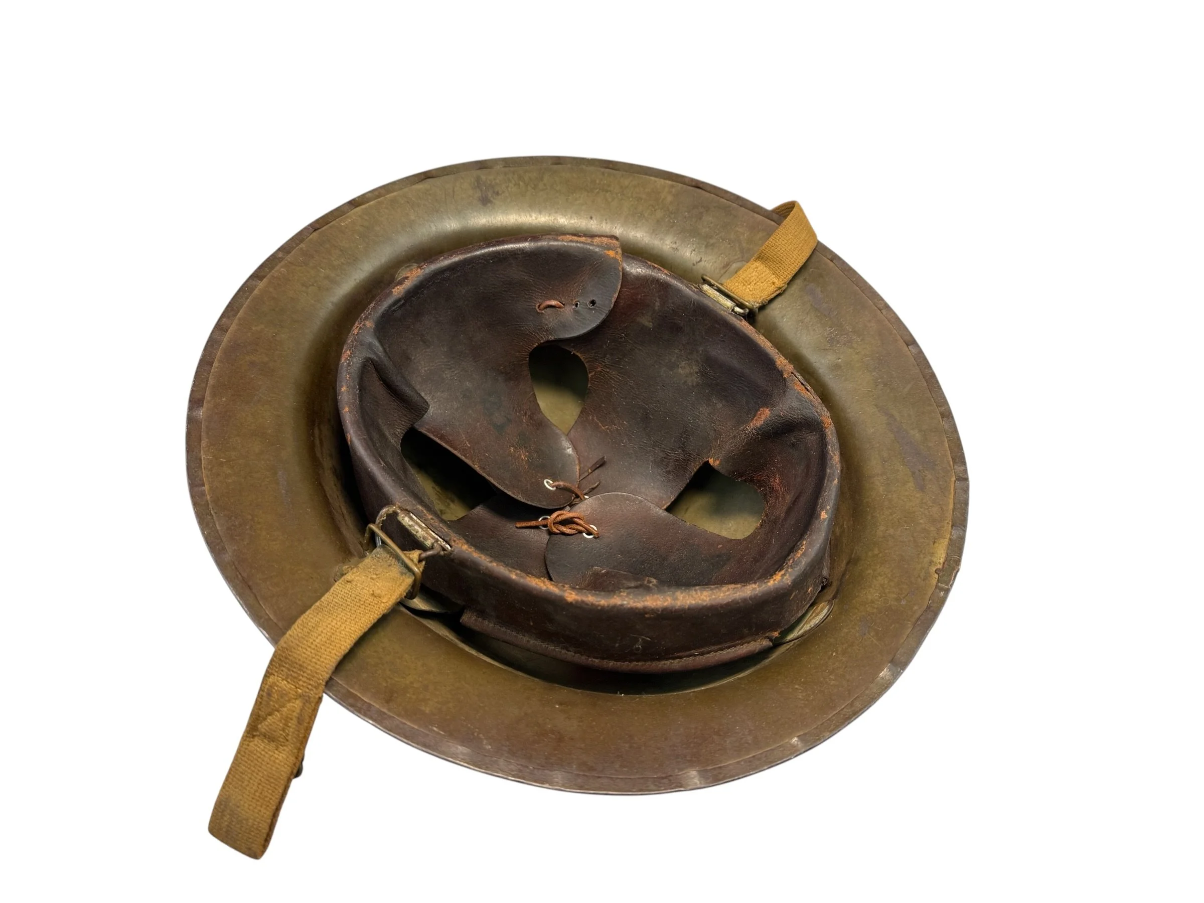 Offered for sale is this very fine example of a Kelly Helmet. The Kelly helmet was first issued during the interwar period of the middle 1930’s. These helmets were finally rolled out in 1941 at the outbreak of the war, but were eventually replaced by the iconic M1 helmet. This helmet is in excellent condition; and fully complete with liner and chin strap.
